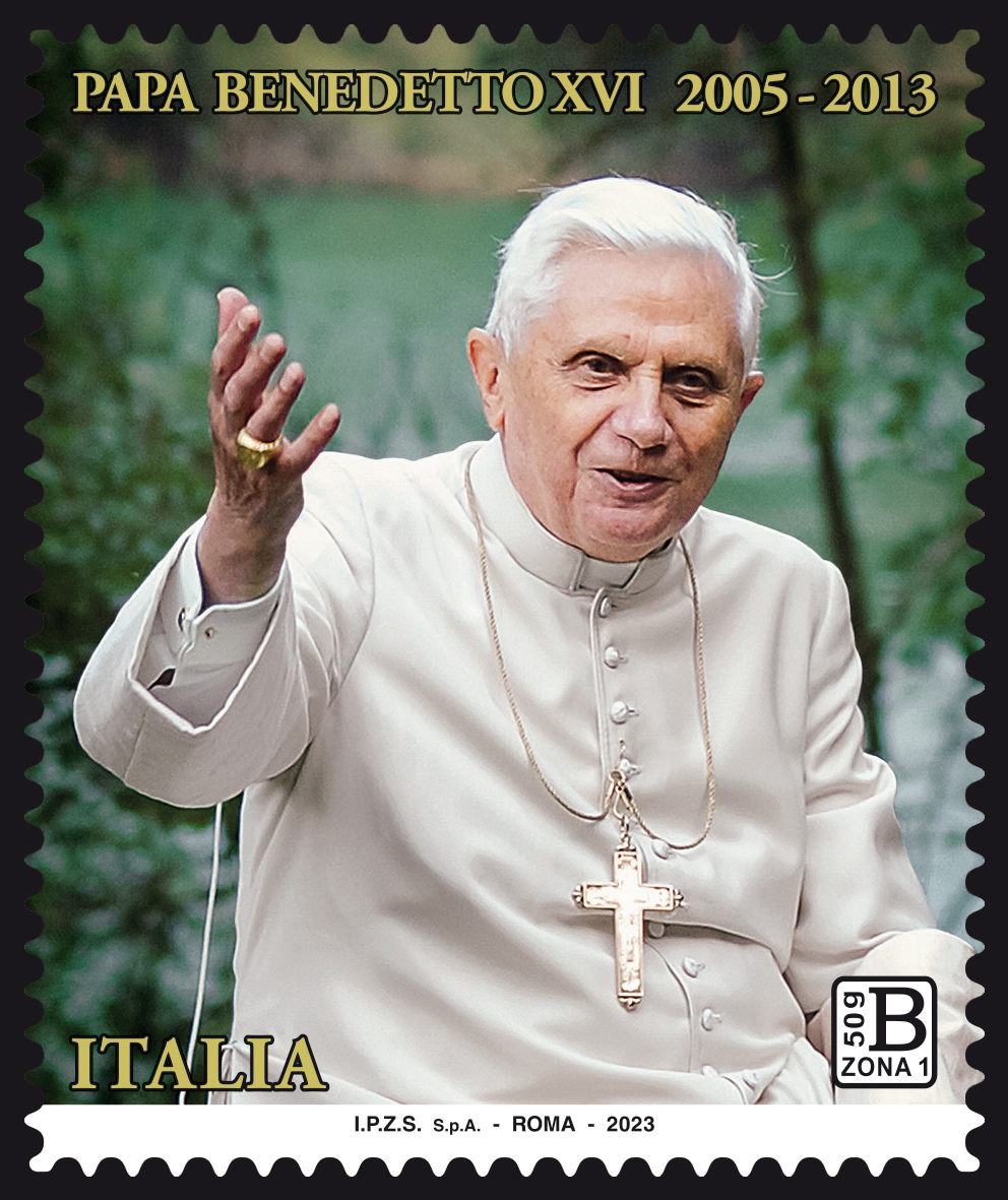 Poste Italiane comunica che oggi 16 maggio 2023 viene emesso dal Ministero delle Imprese e del Made in Italy un francobollo commemorativo di Papa Benedetto XVI, relativo al valore della tariffa B  zona 1-50g pari a 3,05€.